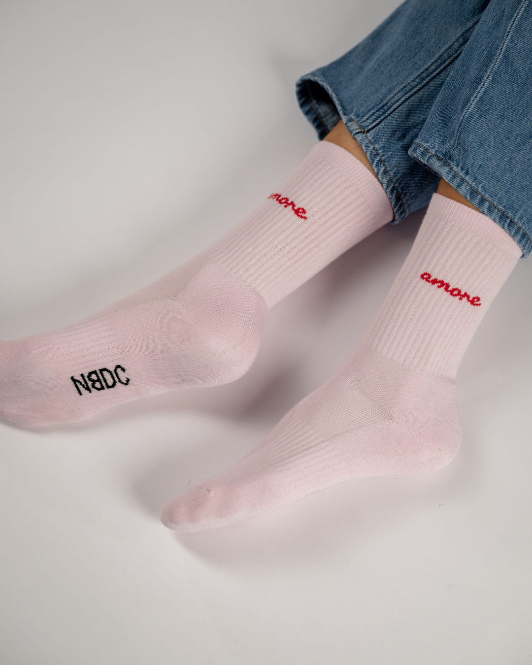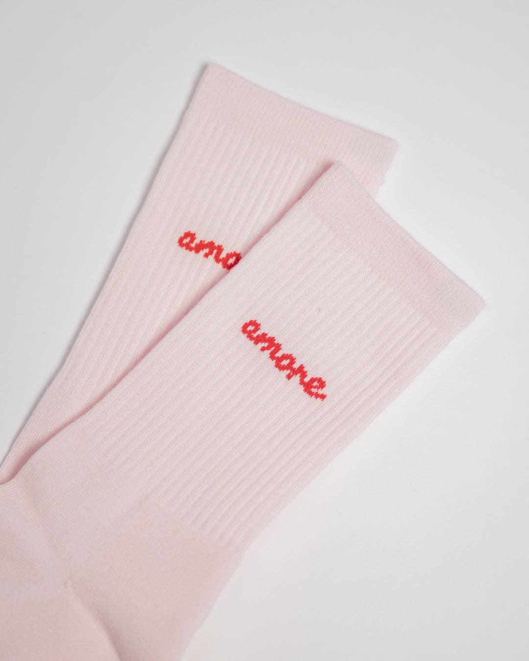 Den bløde lyserøde farve kombineret med den røde AMORE tekst giver et varmt og selvsikkert udtryk. Et enkelt statement om kærlighed, glæde og selvomsorg, som fungerer lige så godt til hverdagsoutfits som til afslappede dage derhjemme. Strømperne er en del af Colorful Statement kollektionen og er skabt til at blive brugt, ikke gemt væk.
