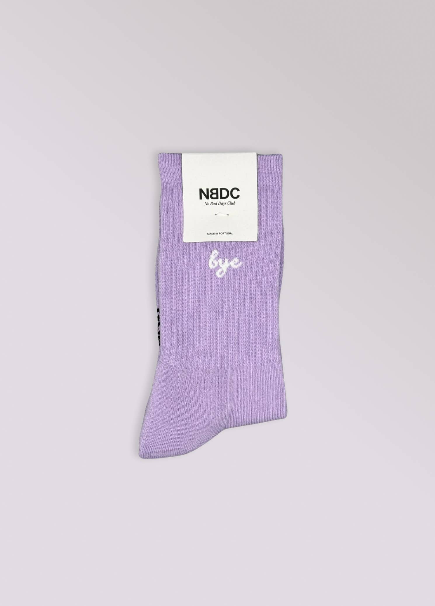 Den lilla farve kombineret med den hvide BYE tekst skaber et rent og selvsikkert udtryk, der passer perfekt til både afslappede dage og mere aktive timer. Strømperne er en del af Colorful Statement kollektionen og er skabt til at blive brugt, ikke gemt væk.
